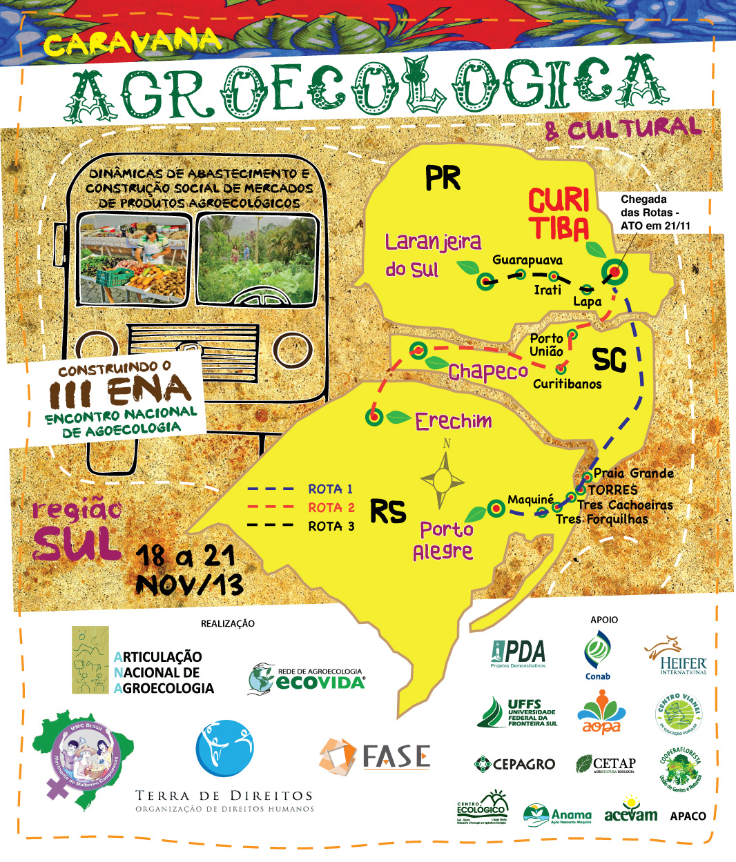 As Caravanas Agroecológicas e Culturais compõem o processo de preparação do III Encontro Nacional de Agroecologia (ENA), que será realizado no primeiro semestre de 2014 em Juazeiro na Bahia. Uma das questões centrais para este III ENA é a comunicação com a sociedade como um fator decisivo no processo de fortalecimento da agricultura familiar e dos povos e comunidades tradicionais. Neste sentido a organização das Caravanas é uma atividade fundamental de mobilização das regiões e de debate dos principais temas do Encontro.